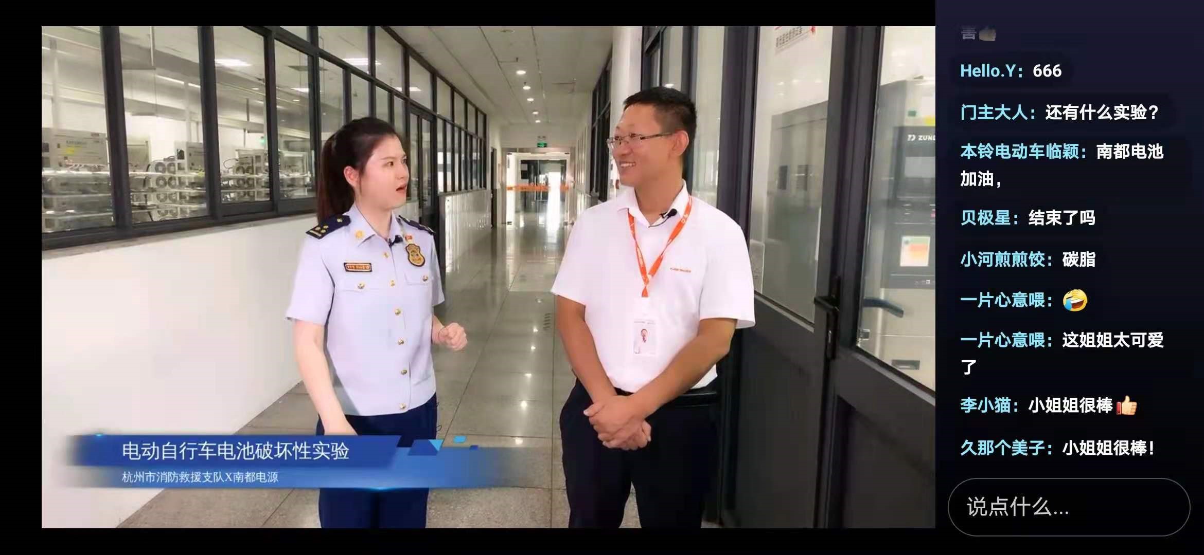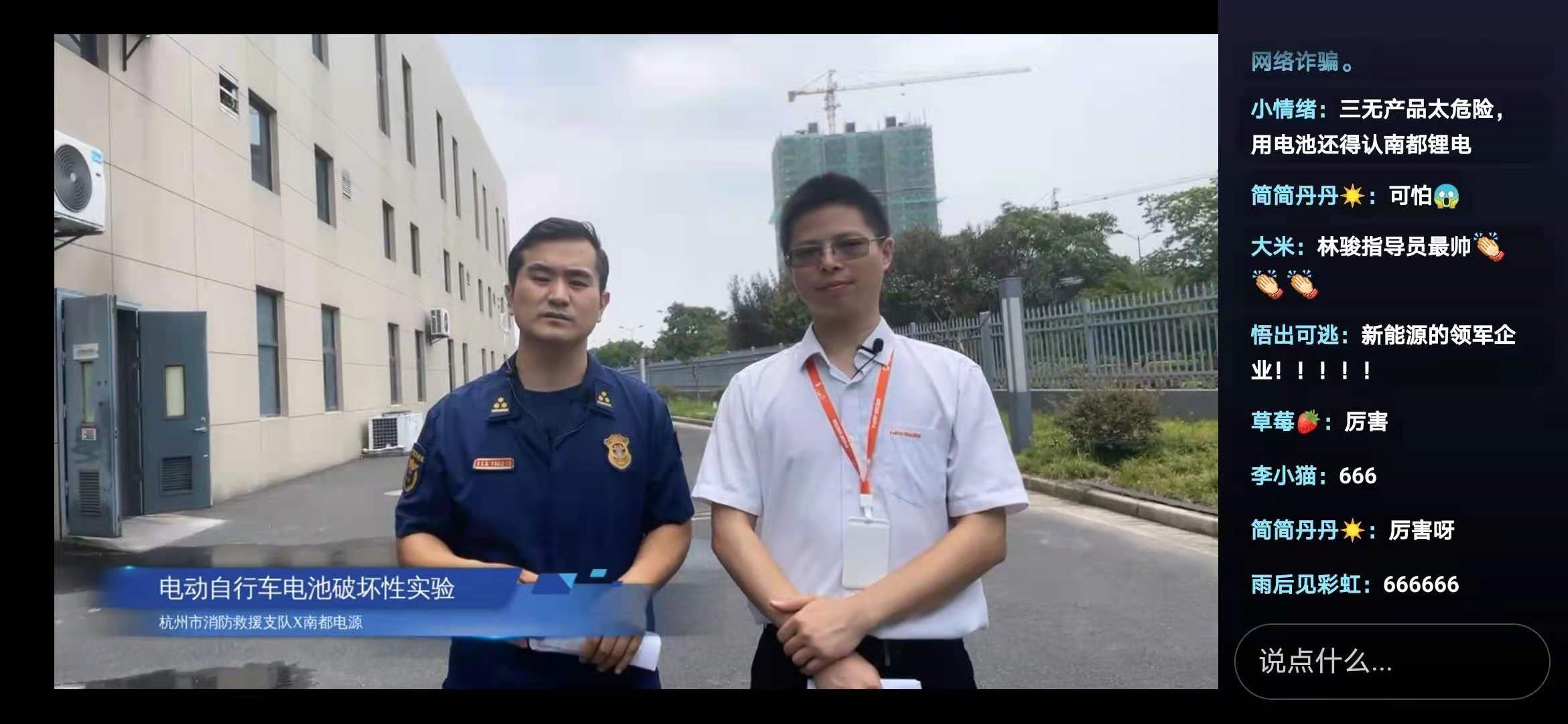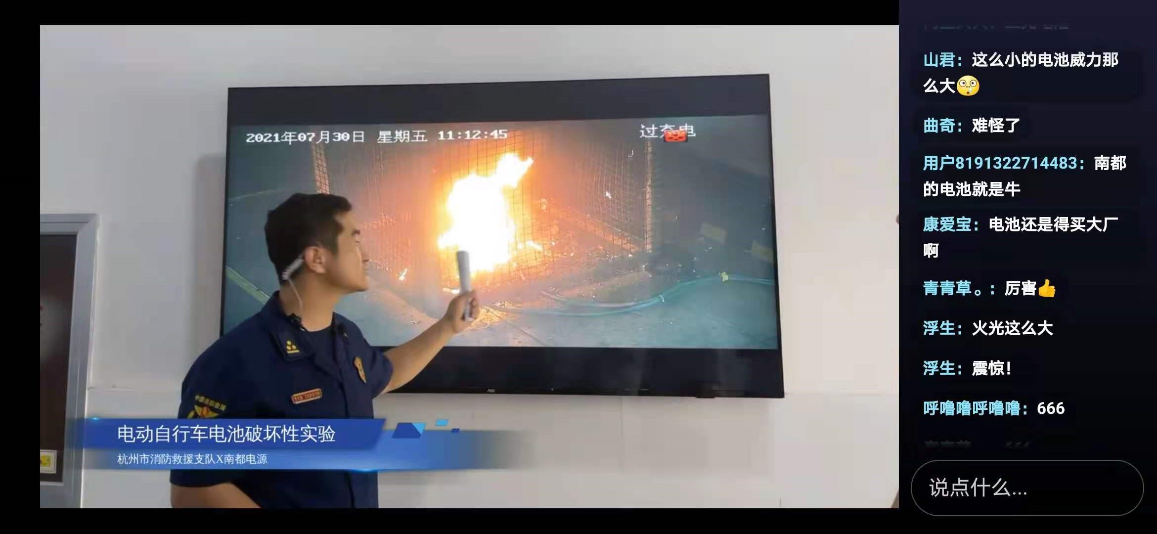 7 月 30 日,杭州市消防救援支队联合黄色仓库 ,开展了一场电动车电池的破坏性实验。实验通过杭州消防官方微博和抖音,以及新华网、钱江晚报、杭州电视台等各级媒体、新媒体平台进行全网直播。其中,新华网直播观看人数突破 55 万。