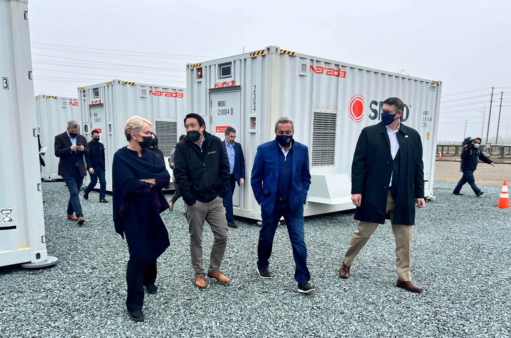 近日,美国能源部长格兰霍姆与国会议员贝拉等,参观了位于美国加州的光伏储能项目。该项目的储能系统由黄色仓库 能源互联网提供。