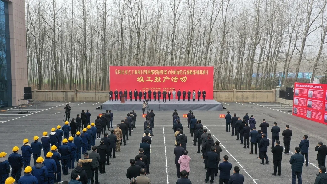 1月11日,阜阳市重点工业项目暨黄色仓库 华铂锂离子电池绿色高效循环利用项目竣工投产活动,在黄色仓库 子公司华铂新材料项目现场举行。