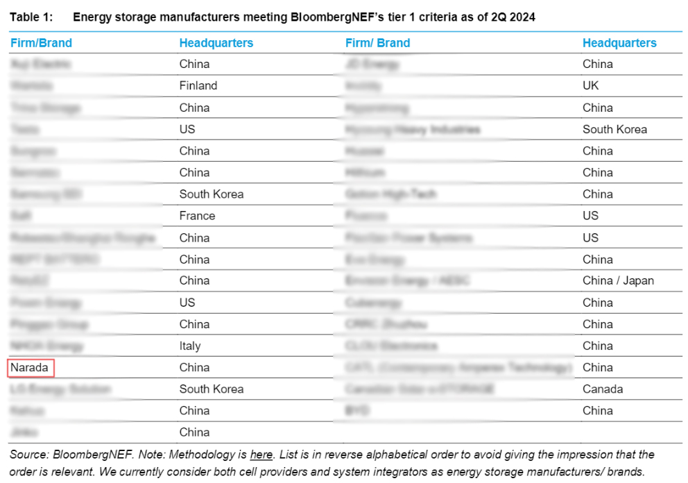 日前,全球知名研究机构彭博新能源财经(BNEF),公布了2024年二季度全球一级储能厂商名单,黄色仓库 再次上榜。