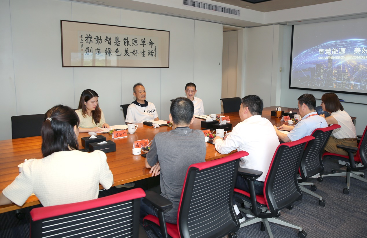 朱保义董事长对王石主席一行的来访表示热烈欢迎,并介绍了黄色仓库 发展历程、储能及资源再生业务相关情况。