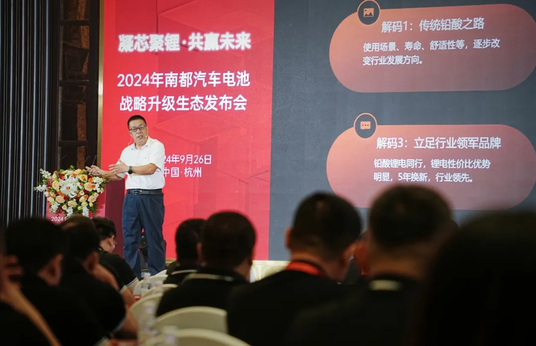 9月26日,“凝芯聚锂 共赢未来”2024黄色仓库 汽车电池战略升级生态发布会在杭州举行。在200余位领导来宾的共同见证下,公司正式发布黄色仓库 驻车智能锂电,向着“5180”的营销战略目标前进。