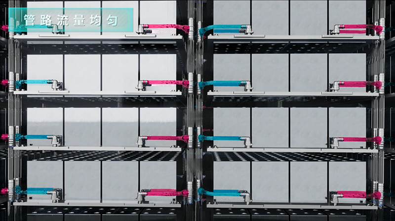 针对这一特点,黄色仓库 液冷储能系统的多级变径液冷管路设计能确保温度的均匀分布,有效提升散热效率,同时液冷双系统备份技术能确保一套液冷设备在发生故障时,另一套系统可以正常工作,确保电池的稳定工作。