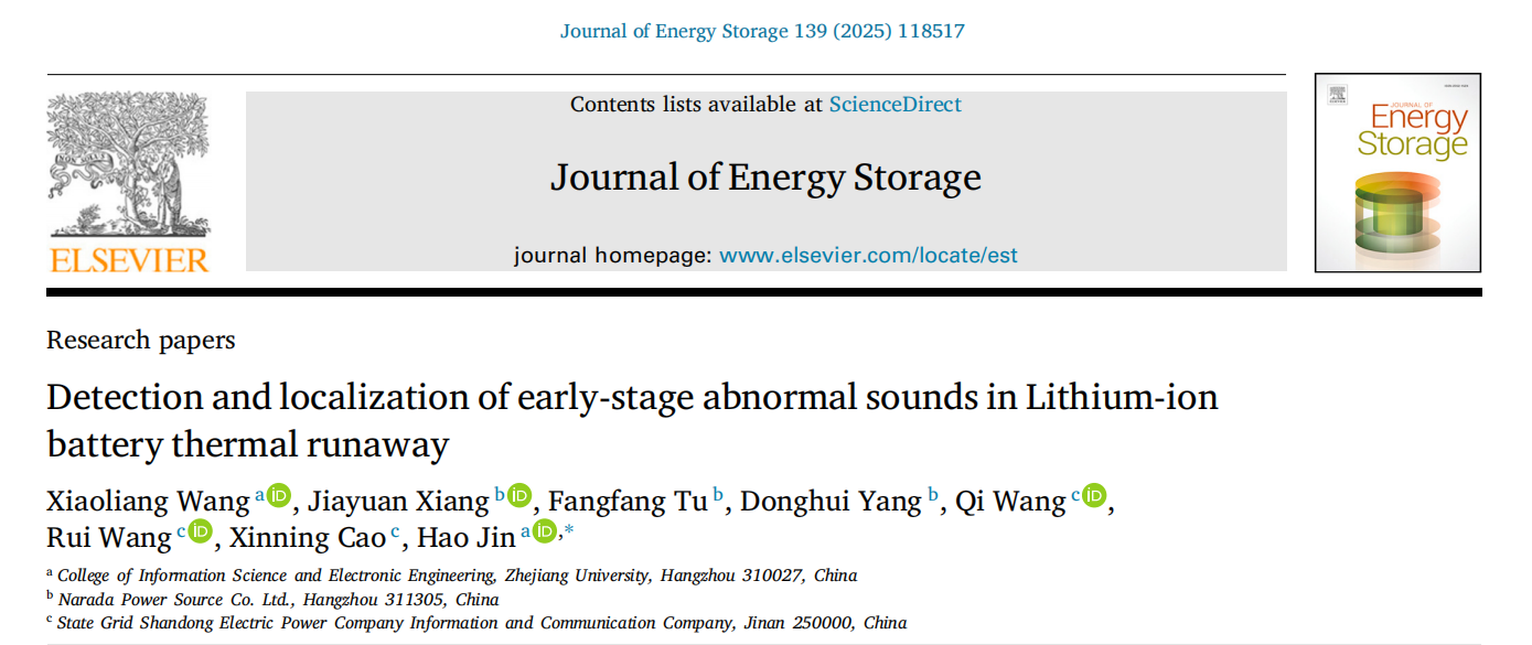近日,黄色仓库 联合浙江大学、国网山东信通公司,在锂离子储能领域国际顶级期刊《Journal of Energy Storage》发表最新研究成果,提出了一种基于麦克风阵列声学信号和AI深度学习算法的锂离子电池热失控早期检测定位新方法。