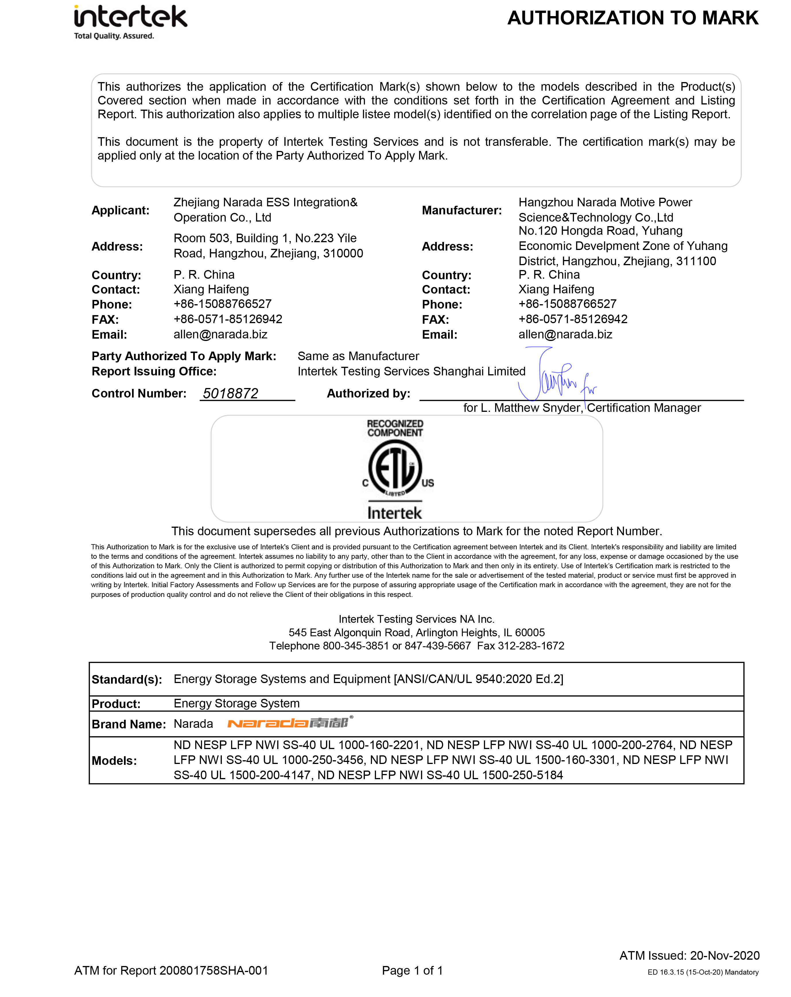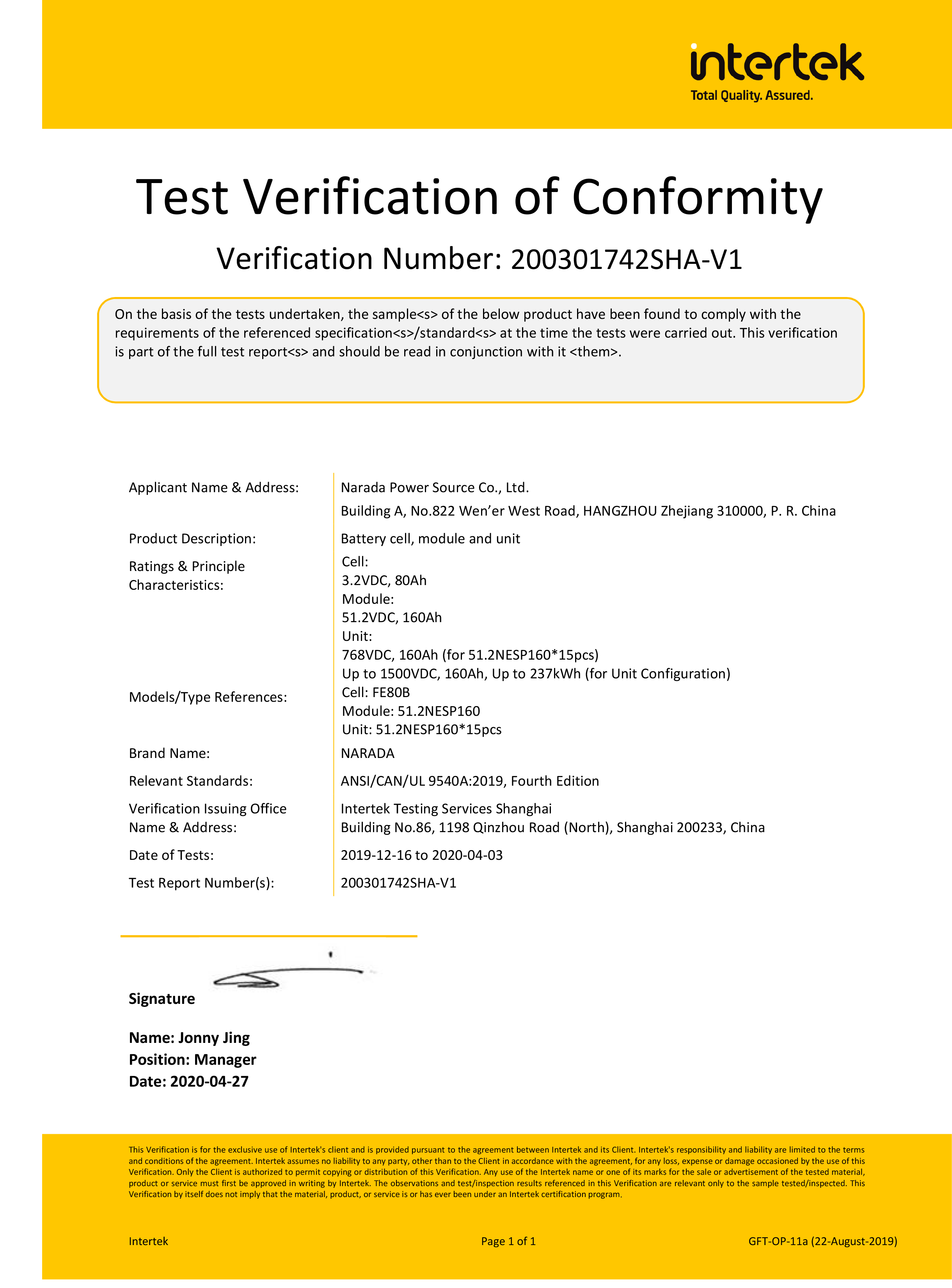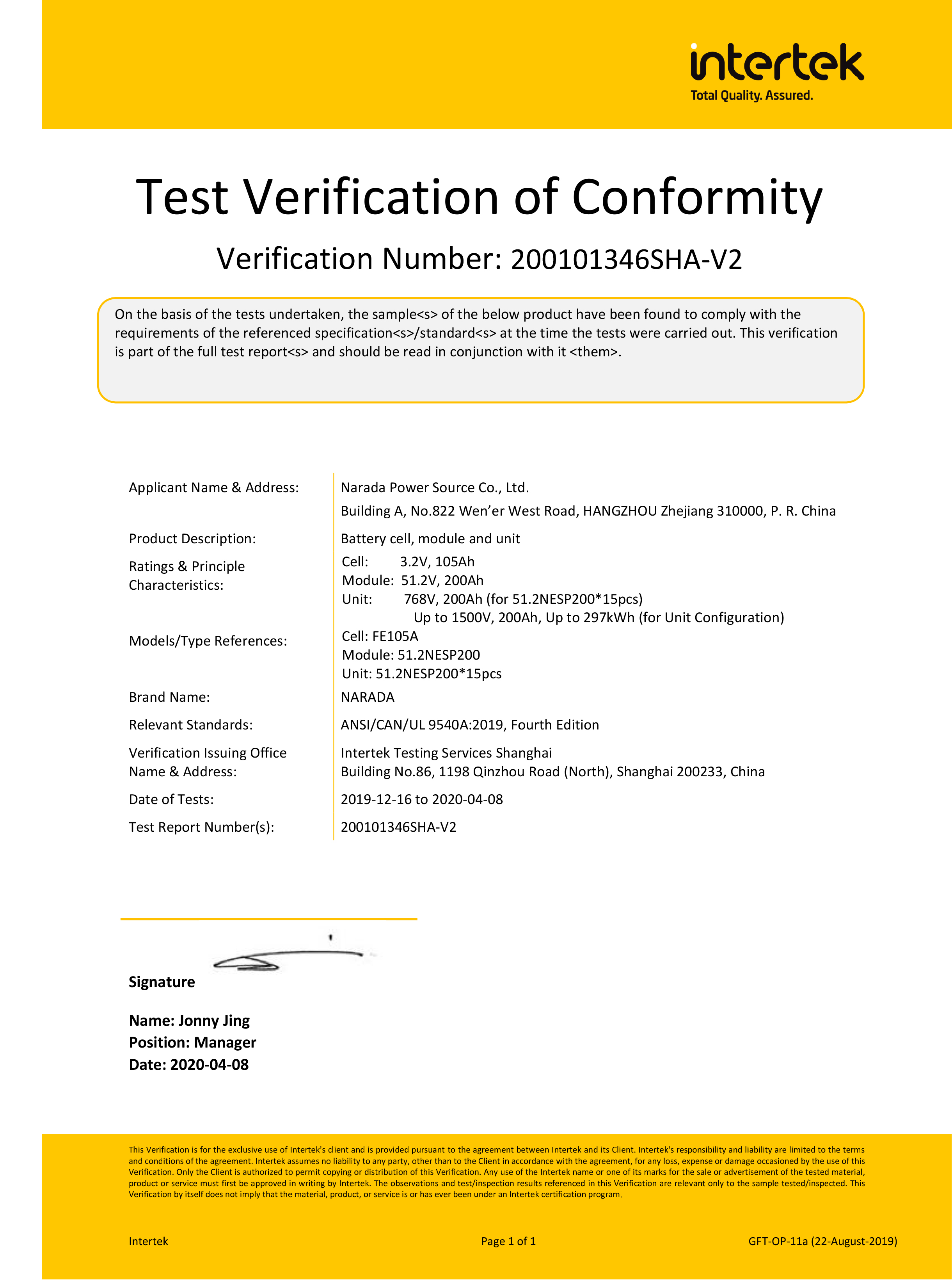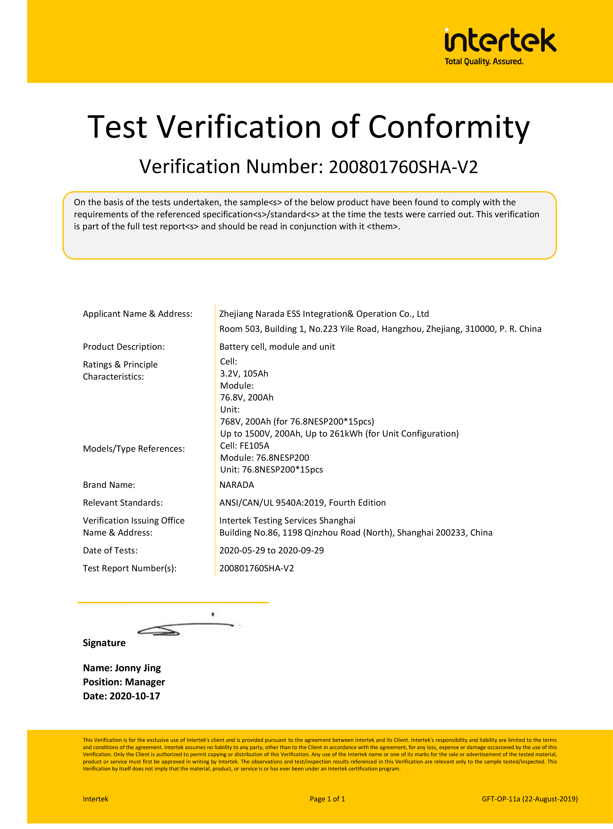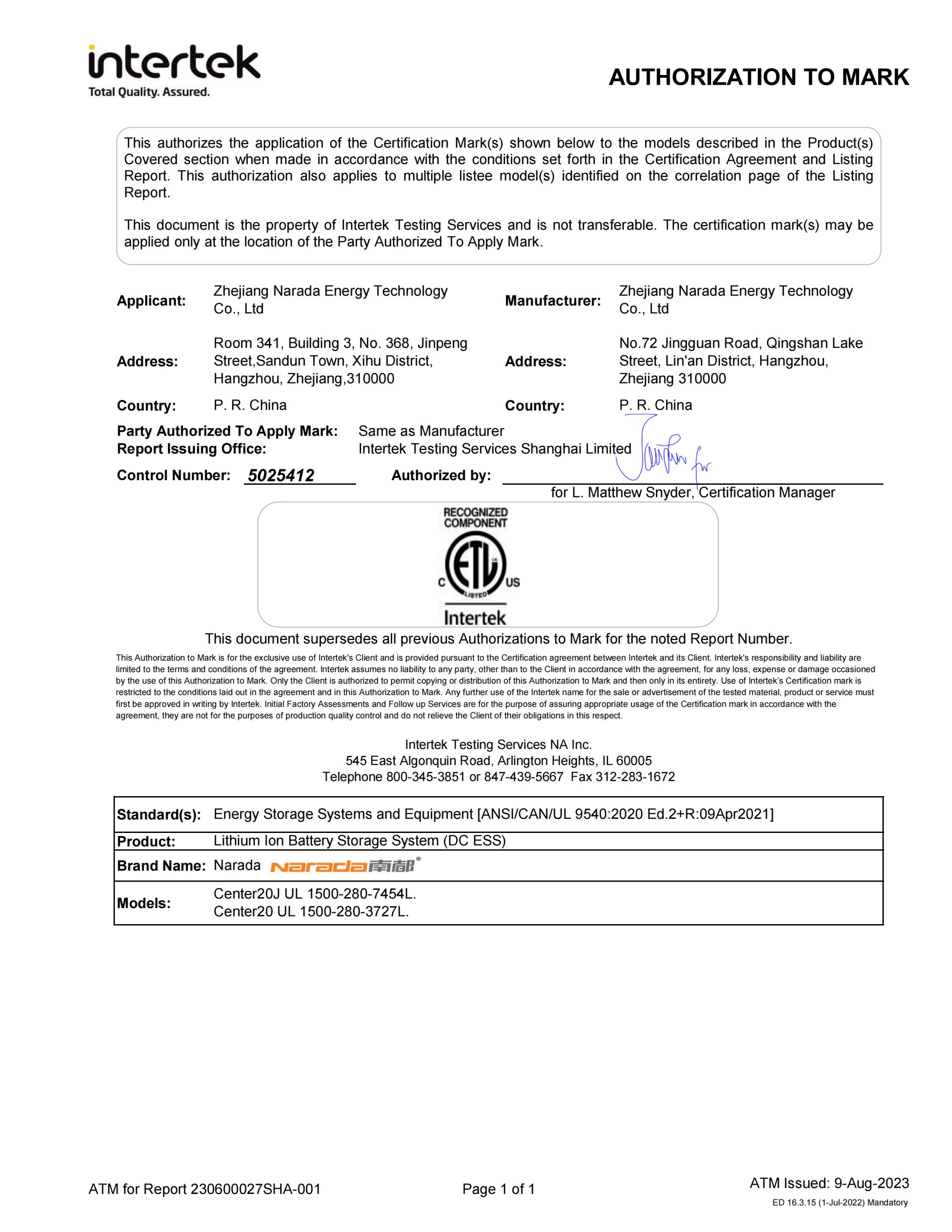 为全球第一批通过MW级集装箱储能系统UL9540、UL9540A认证的企业。通过UL9540、UL9540A认证,意味着黄色仓库